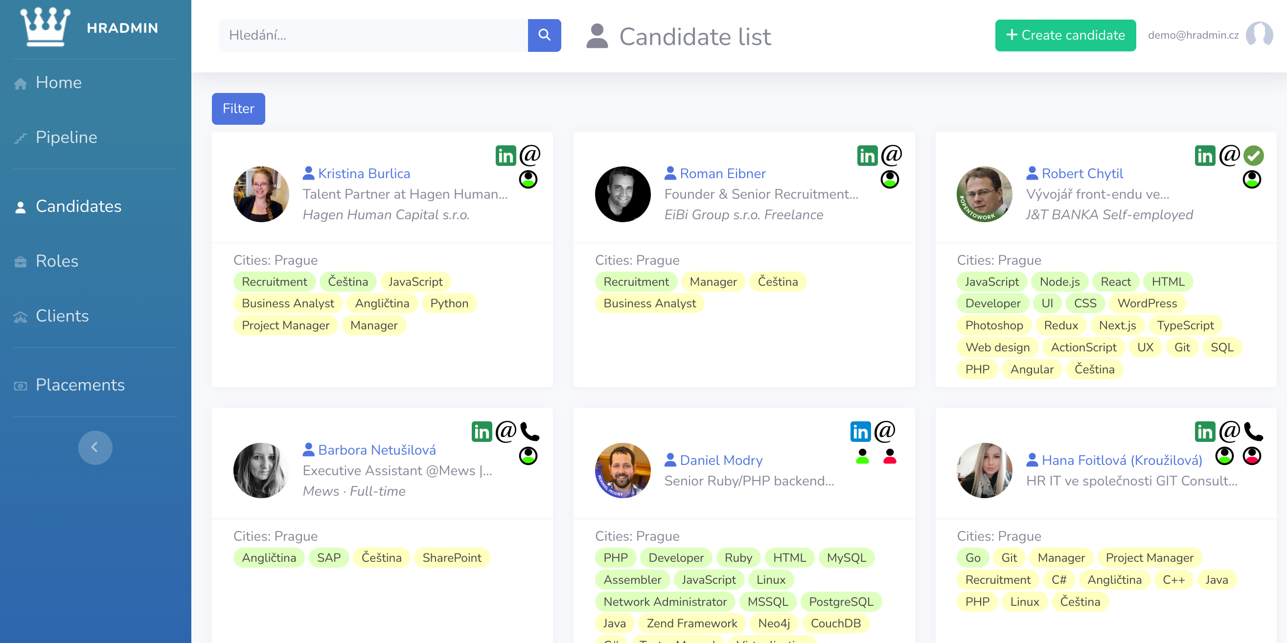 HRAdmin automatically assigns the most suitable candidates to the positions, and you can focus on approaching the right ones. It is not in the power of the HR person to remember all the names of the technologies that the Candidate should have, that is the job for the robot that is the HRAdmin
